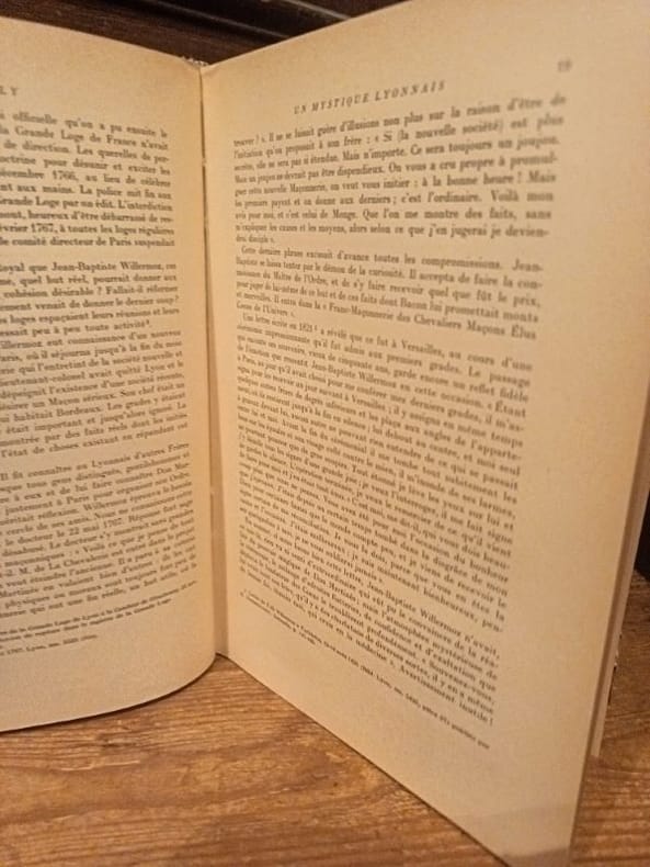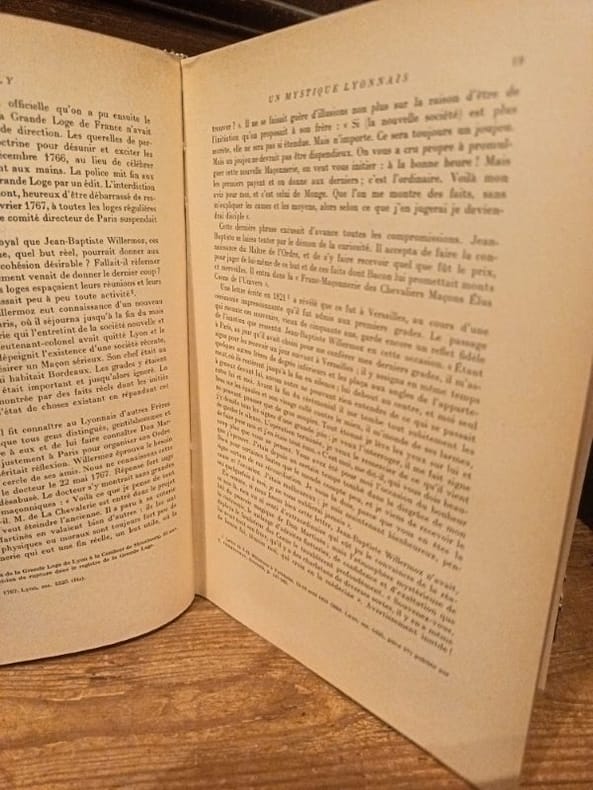 Macon, Protat frères 1938 1 in -4 demi percaline bleue muette 329[p.p] Ceci est un livre qui ouvre une porte dérobée vers le cœur ésotérique de la France. Lyon est, historiquement, la capitale mystique de la Franc-Maçonnerie, berceau de doctrines majeures comme le Rite Écossais Rectifié. L'ouvrage d'Alice Joly plonge dans cette période cruciale, de l'émergence des Loges à la Restauration, révélant les liens intimes entre le mysticisme chrétien et les arcanes maçonniques lyonnais.Un siècle de secrets révélé dans son édition originaleL'étude d'Alice Joly se concentre sur une période charnière (1730-1824), couvrant l'apparition des premiers Rites, la Révolution, et la consolidation des Loges. Le fait de posséder cette Édition Originale est une garantie d'authenticité pour le collectionneur et l'historien. C'est l'ère où des figures essentielles de l'occultisme lyonnais (souvent reliées au Martinisme et à la Stricte Observance Templière) ont laissé leur empreinte. Ce livre n'est pas une fiction ; c'est une recherche historique sérieuse qui dévoile la vraie nature du Maçonnisme lyonnais.L'investissement dans la source ésotériqueL'acquisition de ce volume est un investissement crucial pour l'érudit et le collectionneur spécialisé dans le Rite Écossais Rectifié, le Martinisme ou les Hauts Grades. Ce document rare est une source essentielle pour comprendre pourquoi Lyon est considéré comme le cœur secret des doctrines initiatiques françaises.Pénétrez le mystère de Lyon et ses Loges. Ce livre, dans son édition originale, est la clé pour comprendre la genèse du mysticisme maçonnique français.