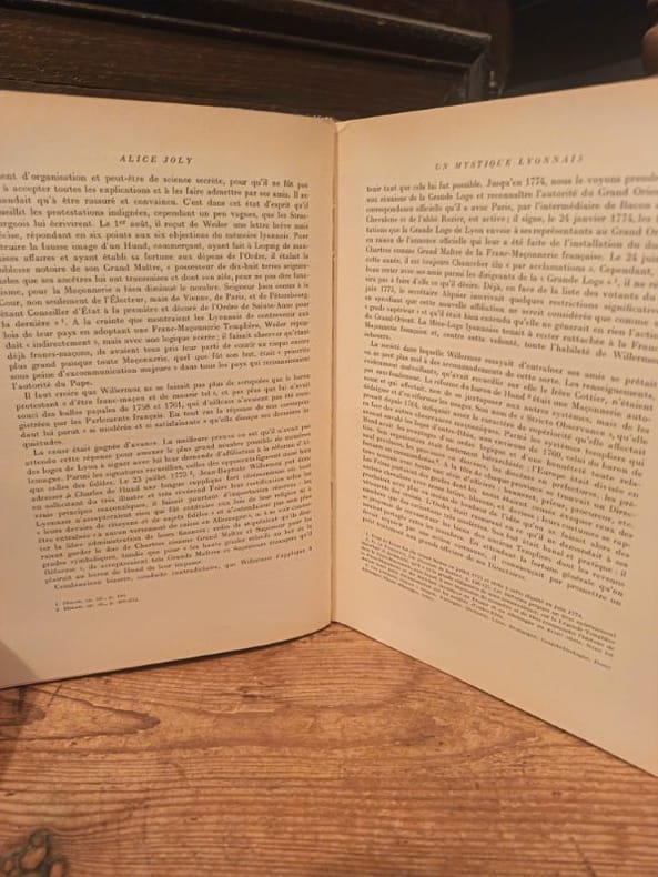 Née à Saint-Lô, elle fut archiviste-paléographe aux Archives de Lyon.Fit beaucoup de travaux sur la franc-maçonnerie lyonnaise du XVIIIème siècle. Pour de plus d' information l adresse du site qui convient le mieux pour cet ouvrage. http://rite-ecossais-rectifie.com/j-b-willermoz-par-alice-joly/. En l'état...............................hors frais d'envoi..........................