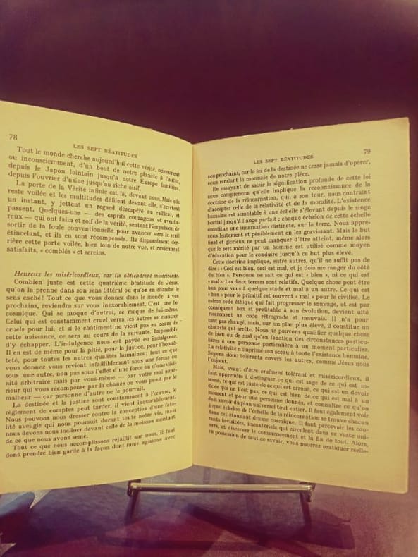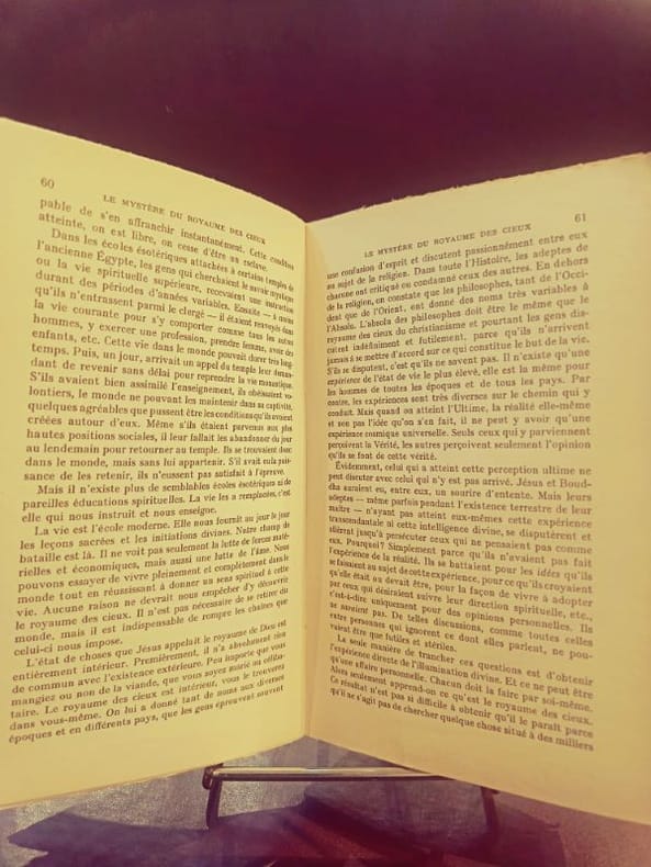 Payot,Paris 1955, in/8 broché, 1955, 267 pages. Traduction de René Jouan. Qu'est-ce que Dieu ? - Une Religion Saine - Le Mystère du royaume des cieux - Les Sept Béatitudes - L'aide pratique du Yoga - L'auto-analyse psycho-spirituelle - La question de l'ascétisme - Les écritures des Yogis - Les erreurs du chercheur spirituel - L'evangile selon Saint-Jean - Le mystère de Jésus.