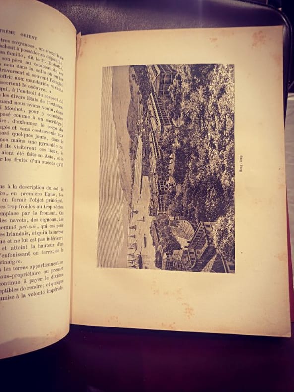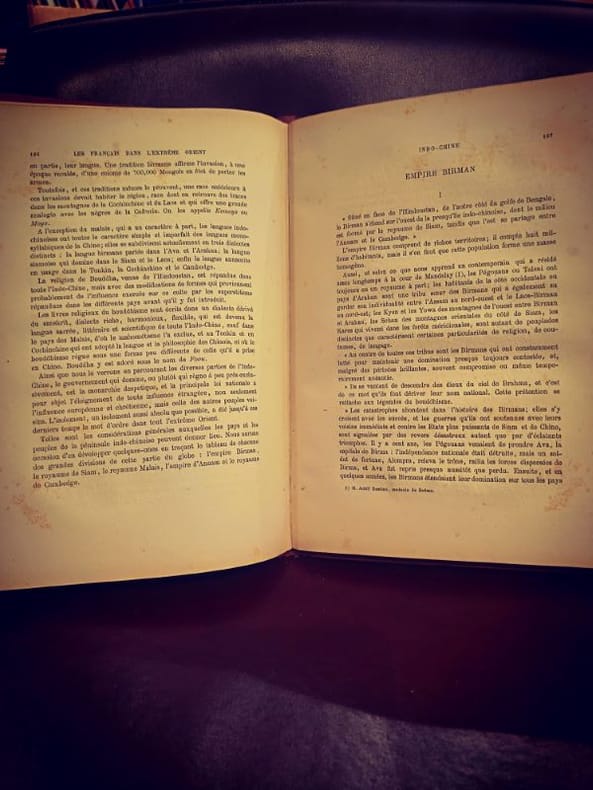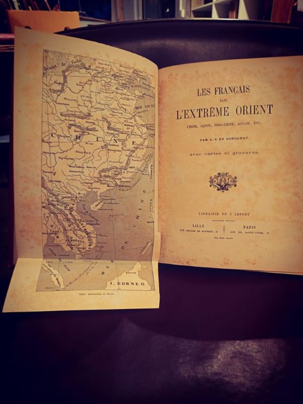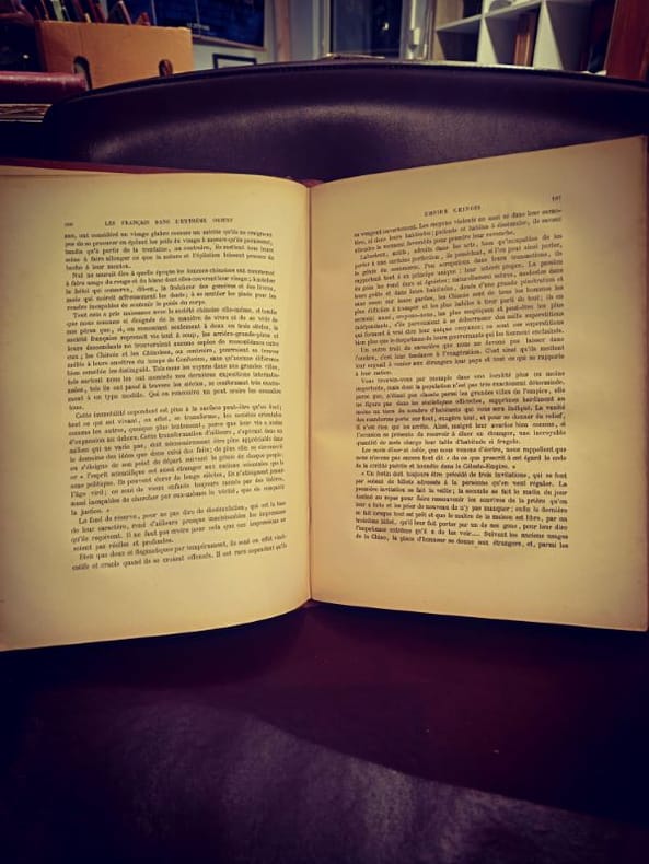 LILLE et PARIS, A.S. DE DONCOURT, 1885. In-4 (21 x 16), demi- chagrin rouge, plats en percaline rouge ornée au premier plat, dos à 5 nerfs orné, titre doré au dos, toutes tranches dorées. Dos frotté, intérieur frais, quelques rousseurs. Illustré d’une carte dépliante en frontispice et de nombreuses illustrations in et hors-texte. 318 pages – 2 ff. tables des matières et des Vignettes. À la suite : La Perse, 328pp, nombreuses illustrations. Bon exemplaire, rousseurs, Livre de Prix.