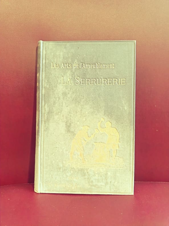 Paris, Imprimerie Weill et Cie 1925 In-4 23 x 31 cm. Broché, dos toile grise muet, plats iillustrés, non paginé [84] pp., 96 planches de reproductions de crémones, becs de cane, serrures, rosaces, feuillages. Exemplaire en très bon état.