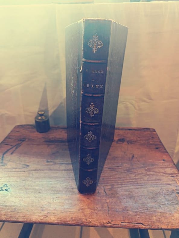 Paris, 1 in -8 demi chagrin Le Manifeste de la Liberté : D'Hernani à TorquemadaTOUTE LA PASSION DU THÉÂTRE ROMANTIQUE DANS UN SEUL VOLUME MAGISTRALRevivez les plus grandes batailles littéraires du XIXe siècle. De l'onde de choc d'Hernani à la splendeur tragique de Ruy Blas, ce volume réunit les pièces qui ont brisé les chaînes du classicisme pour inventer le drame moderne. C'est ici que bat le cœur du romantisme français : passion, honneur, trahison et sacrifice.Les leviers d'achat de cet exemplaire :Une Anthologie de Chefs-d'œuvre : Posséder ce volume, c'est détenir l'intégralité du répertoire dramatique de Hugo. De la noirceur de Lucrèce Borgia à la légende des Burgraves, vous parcourez toute la palette des émotions humaines.La rareté de Torquemada : La présence de ce drame tardif et puissant sur l'Inquisition ajoute une valeur intellectuelle et une profondeur rare à l'ensemble.Un objet de prestige et de savoir : Un livre qui regroupe autant de titres historiques impose sa présence dans une bibliothèque. Sa reliure d'époque souligne l'aspect patrimonial et intemporel de ces textes qui continuent d'être joués sur les plus grandes scènes mondiales.