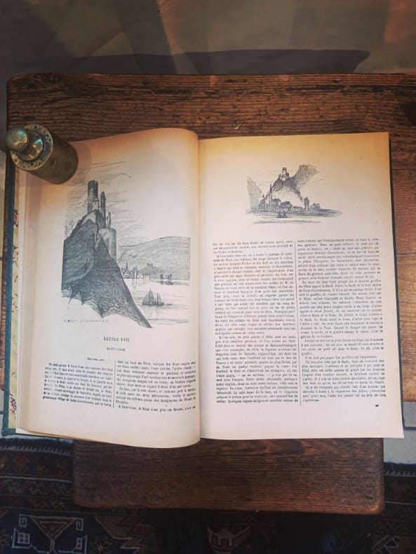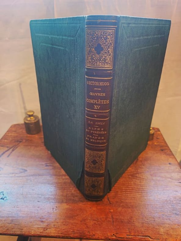 Paris, Eugène Hugues in-8 demi chagrin et toile L'INVITATION AU "GRAND TOUR" PAR LE MAÎTRE DU ROMANTISMETraversez l'Europe à travers les yeux de Victor Hugo. Ce volume exceptionnel réunit les carnets de voyage les plus poétiques et les plus visionnaires de l'auteur. Du Rhin légendaire aux sommets sauvages des Pyrénées, chaque étape est une occasion pour Hugo de mêler descriptions éblouissantes, légendes fantastiques et réflexions géopolitiques.Les leviers de fascination de ce volume :Évasion totale : Les illustrations de l'édition Hugues donnent corps aux paysages traversés, des forteresses rhénanes aux cols pyrénéens.Le Hugo architecte : Un texte indispensable pour les amoureux de vieilles pierres et de patrimoine, où l'auteur plaide avec passion pour la conservation des merveilles de l'Europe.Esthétique de bibliothèque : Un volume massif et décoratif, dont la thématique du voyage attire aussi bien les bibliophiles que les collectionneurs de récits d'exploration.