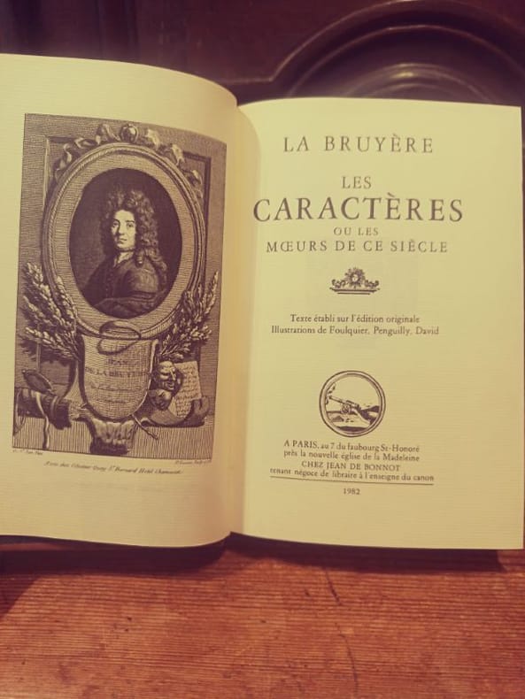 Second or third printing of the original edition. The title-page states ""seconde edition"", but it is probably the third, printed in the same year as the first and second, being a page-by-page re-impression of the second, except for the fact that corrections have been made and the errata-leaf is thus not printed in the third. Both the second and third original editions are from the same year and by the same printer as the first. ""La seconde édition, également impr. en 1688 n'offre que quelques légers changements..., et la troisième, sous la même date, ne qu'une simple réimpression de la seconde."" (Brunet III:720). This work includes the first French translation of Theophrast's Characters (and probably the first translation into any modern language?). ""Theophraste a eu le grand honneur, comme on sait, d'être ttraduit au XVIIe siècle par La Bruyère: et c'est pourquoi, en France plus que dans tout autre pays, en dehors même du cercle des érudits, son nom et son opuscule sont populaires."" (navarre, Budé-edition of ""Caractères"", Paris, 1920).Jean de la Bruyère (1639/1644 - 1996) was a very famous French moralist and writer. ""C'est au commencement de 1688 que parut la premiere édition des ""Caractères de Théophraste traduits du grec, ou les Mæurs de ce siècle."" L'auteur mettait ses propres observations sur la société moderne sous le patronage d'un ancien."" (N.B.G. p. 427). The ""Characters"" gave La Bruyère quite a few enemies and created furor in the learned world. In Denmark Holberg calls him ""trivial and simple"" (Epistle 404). ""Mais si en effet la malignité contemporaine, applaudissant aux traits satiriques de l'ouvrage, a peu contribuer à sa vogue, le jugement de la postérité l'a consacré comme un des meilleurs livres de notre langue."" (N.B.G. p. 427). This work is thus still considered to be one of the greatest French books. Voltaire writes in ""Siecle de Louis XIV, c. XXXII"": ""On peut compter parmi les productions d'un genre unique les ""Caractères"" de La Bruyère. Un style rigide, concis, nerveaux, des expressions pittoresques, un usage tout nouveau de la langue, mais qui n'en bless pas les règles, frappèrent le public"". Bruyère's work with the translation really did cause astonishment and had an immense impact on late 17th century Europe and onwards" it created a new literary genre in Europe, and the age of Enlightenment was delighted with the short, precise characterizations of people and their customs. For an analysis of the contents and the impact on the time of La Bruyère see Nouvelle Biographie Generelle (N.B.G. pp. 426-39). Brunet V:798 + III:721, Graesse 4:61.