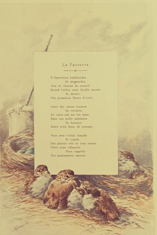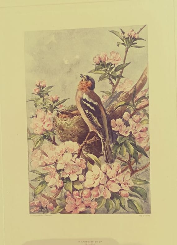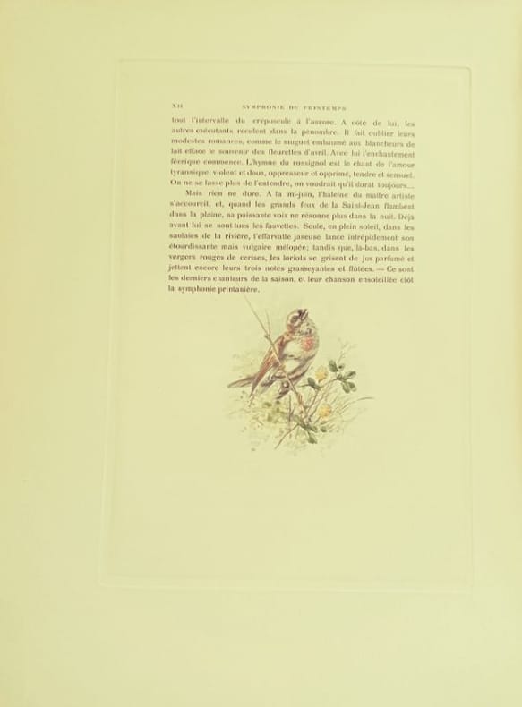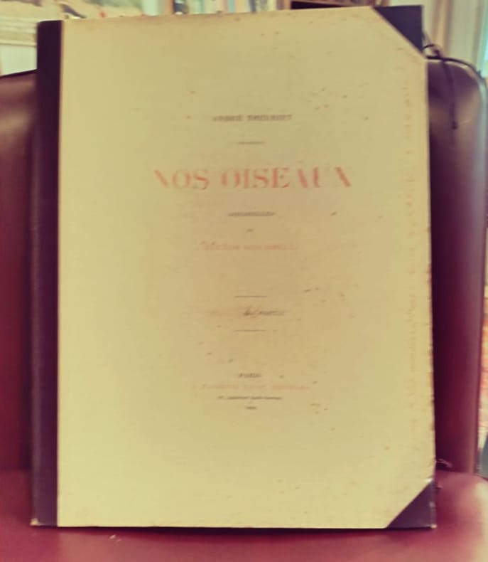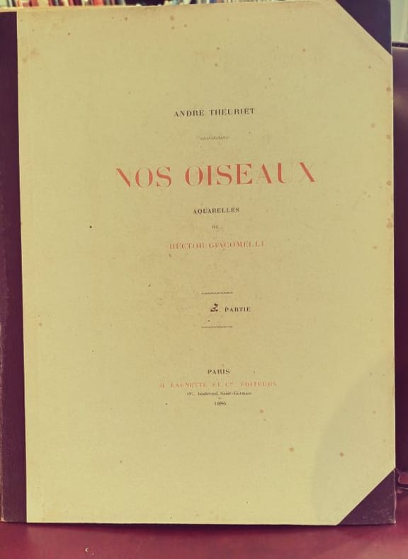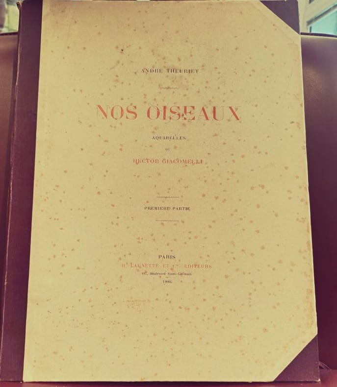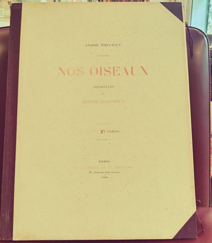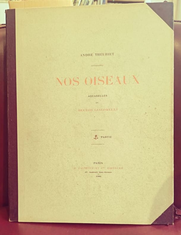 Paris, H. Launette et Cie 1886 5 in folio feuillets sous étui et chemise cartonnés Ouvrage iconique de la bibliophilie naturaliste du XIXe siècle. Cette édition prestigieuse, ici complète en 5 parties, met en lumière le travail d'Hector Giacomelli, dont la précision et la poésie des aquarelles restent inégalées. Un hommage vibrant à la faune aviaire française, servi par la plume élégante de Theuriet.Qualité de l'exemplaire :État intérieur : Exceptionnel. Les feuillets ont conservé une grande fraîcheur, les rousseurs y sont rares et éparses, laissant tout l'éclat aux illustrations.État extérieur : Rousseurs visibles sur les coffrets et les tranches (patine d'usage), protégeant efficacement le contenu.Dos : Dos non fendus, assurant la parfaite intégrité des 5 volumes.