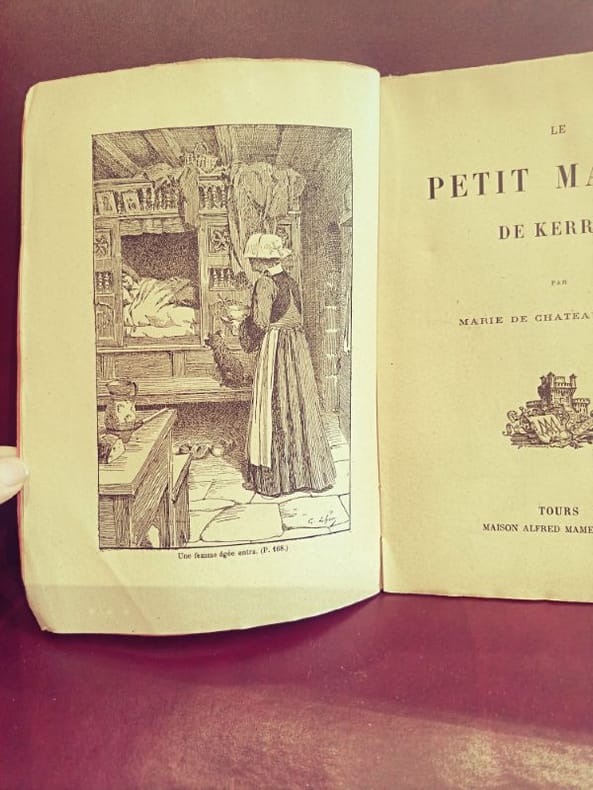 Tours, Mame SD 1 in -8 Broché couverture Illustrée 189 [p.p] Un charmant récit de la littérature de jeunesse du début du XXe siècle. L'histoire transporte le lecteur au cœur des terres bretonnes, dans une atmosphère de château et de traditions. Les éditions Mame, célèbres pour la qualité de leurs ouvrages destinés à la jeunesse, proposent ici un texte empreint de noblesse et de vertu.Provenance : Exemplaire de prix avec une belle inscription à la plume en première page datée de 1936 ("1er Prix").Reliure : État d'usage, reliure légèrement abîmée (coins ou coiffes), mais l'ouvrage conserve tout son charme d'époque.Dos : Dos non fendu, structure du livre solide.