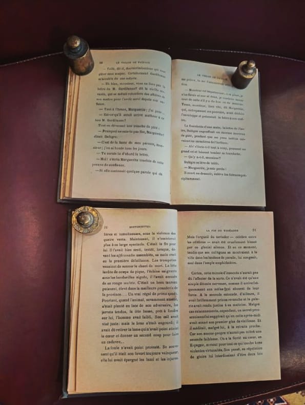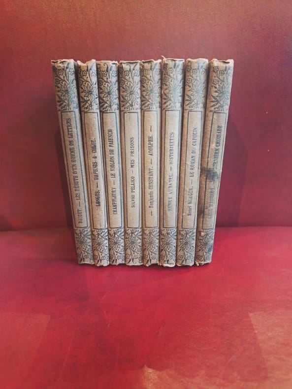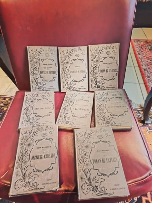Paris, E. Girard et A. Boitte SD (1885ca) 8 in 12 Pleine toile éditeur richement ornée et illustrée (Signée Engel). Reliures : Cartonnages d'éditeur en pleine toile, aux plaques spéciales signées Engel. Dos et plats richement ornés de motifs floraux et de scènes illustrées.État : Bel état de conservation général pour ces reliures fragiles. Intérieur : Papier d'époque, bel état de lecture.