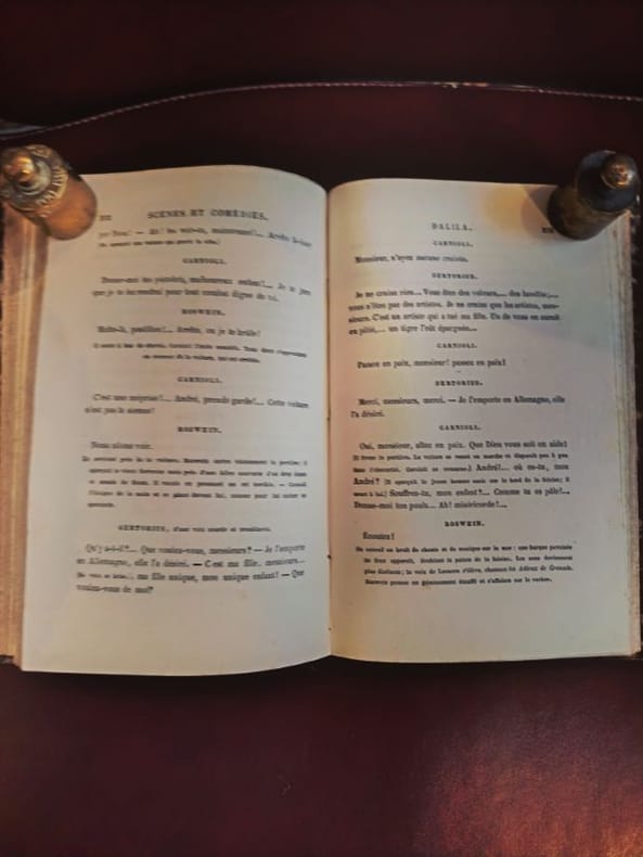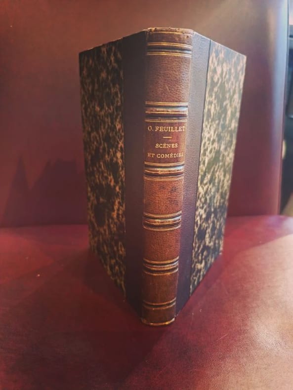 Paris, Calmann-Lévy 1876 1 in -8 demi chagrin dos à caisson et ornés 389 [p.p] Un recueil emblématique du théâtre d'Octave Feuillet. On y retrouve toute la finesse psychologique et l'élégance de dialogue qui lui valurent son fauteuil à l'Académie française. Ces "Scènes" sont autant de portraits de société peints avec une distinction rare. Un bel exemple de l'édition de théâtre du XIXe siècle.État : Très Bel État (TBE).Reliure : Demi-chagrin de belle facture, cuir sain et bien conservé.Dos : Dos à nerfs, richement décoré de caissons aux fers dorés. Dos non fendu, exemplaire parfaitement solidaire.Intérieur : Très propre, papier de qualité supérieure.