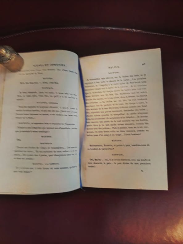 Paris, Michel Levy, 1856. Format 12x18 cm, 2 demi-reliure chagrin, toutes tranches dorees, 327 et 371 pages. Tres jolies reliures d'epoque, tres decoratives, marquees I et 2.Tres bon etat.