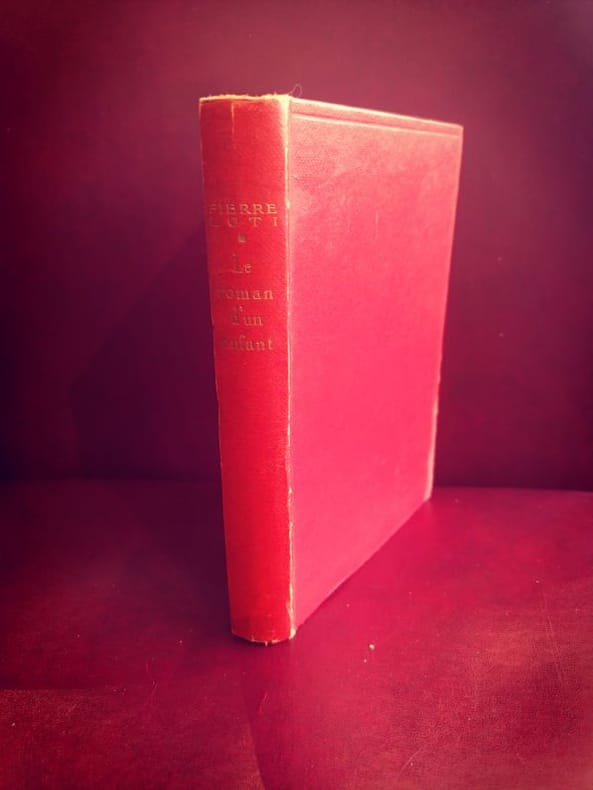 Paris, Calmann-Lévy 1948 1 in -8 cartonnage éditeur toile rouge 253 [p.p] L'œuvre la plus sensible de Pierre Loti. À travers ses souvenirs d'enfance, l'auteur nous livre une réflexion universelle sur le temps qui passe et la beauté des premières émotions. Un texte fondamental pour comprendre la psychologie de ce grand voyageur.