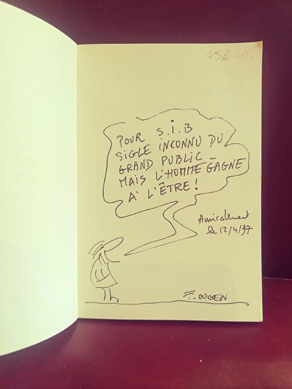 Un condensé d'humour piquant et de regard acéré sur la société, fidèle à l'esprit du Canard Enchaîné. Cet exemplaire est exceptionnel par la présence, en première page, d'un envoi autographe signé agrémenté d'un dessin original de François Ougen. Un témoignage direct du talent de ce caricaturiste. Excellent Disponibilité sous réserve de vente en boutique, prix valable frais de port inclus pour commande > 90 € et poids < 1 Kg