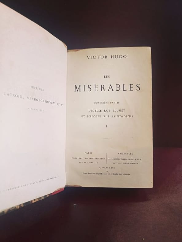 Paris & Bruxelles, Pagnerre & Lacroix, Verboeckhoven et Cie 1863 1 in -8 demi chagrin grenat dos à caisson 311 [p.p] Volume crucial de l'épopée hugolienne, comprenant notamment le récit de la bataille de Waterloo et la rencontre poignante entre Jean Valjean et la petite Cosette à Montfermeil. Cette édition Pagnerre est celle par laquelle le public français a découvert le chef-d'œuvre de l'exilé de Guernesey.