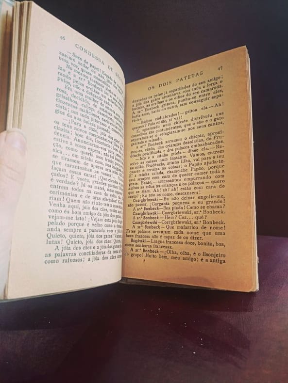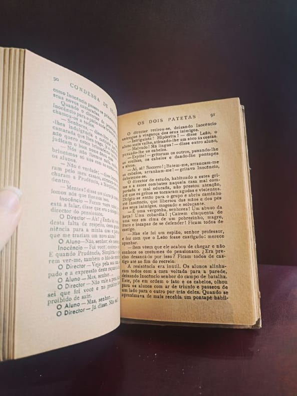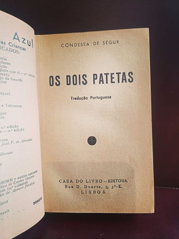 Lisbonne, Casa do livro 1953 1 in -8 Cartonnage Editeur avec couverture Illustrée 218[p.p] Une rare incursion de la Comtesse de Ségur dans l'édition lusophone des années 50. "Les Deux Nigauds", récit piquant sur la naïveté et les mésaventures de deux jeunes gens, trouve ici une traduction pleine de charme. Un volume idéal pour les collectionneurs des œuvres de la Comtesse souhaitant enrichir leur bibliothèque d'éditions internationales.