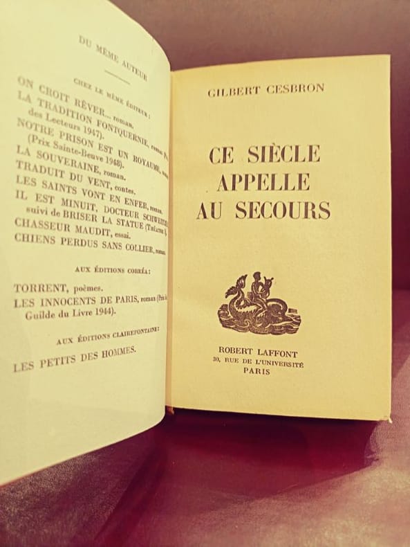 Paris, Robert Laffont 1955 1 in -8 Reliure demi-chagrin, dos à caissons 266 [p.p] ÉDITION DE 1955 — GILBERT CESBRON, CE SIÈCLE APPELLE AU SECOURSRobert Laffon — un cri d’alarme spirituel, lu par des millions dans les années 1950. Pour les amateurs de littérature spirituelle, les collectionneurs de reliures anciennes, ou ceux qui veulent posséder un morceau d’histoire — avec une prière à chaque page.“Ce n’est pas qu’un livre — c’est un appel au secours, lancé par un siècle en crise.”