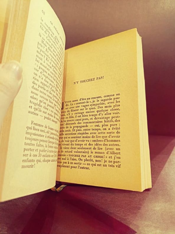 Bel envoi autographe à Michel de Saint Pierre, " ce siècle appelle au secours...mais il ne sait pas qui ! Toi, Michel tu sais..fidèlement." vol. in-8, 190x130, relié pleine toile, pièce de titre, très bel état intérieur, couvertures d'origines conservées avec dos, 266pp. Robert Laffont, 1955 ref/215