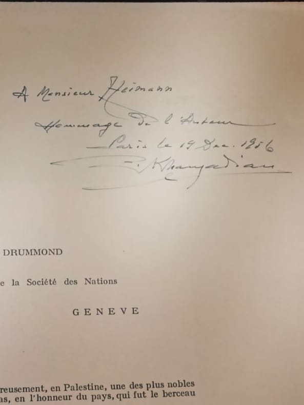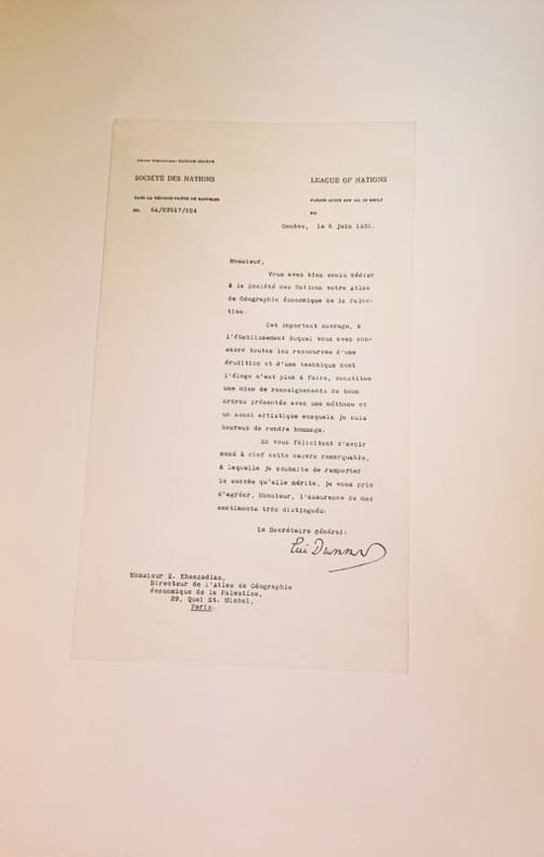 Editions geographiques Khanzadian 1932 1 Folio feuillets sous coffrage RARETÉ HISTORIQUE — EXEMPLAIRE DÉDICACÉ — FORMAT FOLIO — ÉTAT EXCEPTIONNELL’Atlas de géographie générale de la Palestine (1932) — rédigé par la Société des Nations (SDN) — est un témoignage cartographique unique d’une époque où la géopolitique du Proche-Orient était redéfinie. Rareté absolue : Très peu d’exemplaires subsistent, surtout en format folio — ce qui en fait un objet imposant, rare et prestigieux. Preuve sociale forte : Ce livre a été utilisé par des institutions académiques et des diplomates de l’époque — aujourd’hui, il est recherché par les chercheurs sur la Palestine pré-1948. Contexte géopolitique brûlant : Dans un monde où la Palestine est au cœur des débats, cet atlas devient un artefact politique et historique vivant — un outil de compréhension, pas seulement un objet. Contenu détaillé : L’atlas comprend 135 cartes en noir et en couleur, couvrant :La géographie physique et humaine de la PalestineLes frontières et les territoires administrés par la SDNLes ressources naturelles et les infrastructuresLes données démographiques et religieusesLes zones de conflit et les projets de développement Dédicace manuscrite de l’auteur — une connexion personnelle avec l’histoire, rare et émouvante. État du cartonnage : Légères usures aux angles — signes d’authenticité et d’usage historique — mais reliefs centraux magnifiques, soulignant l’élégance originale de la reliure.Ne cherchez pas ailleurs — ce n’est pas un livre, c’est un témoignage.