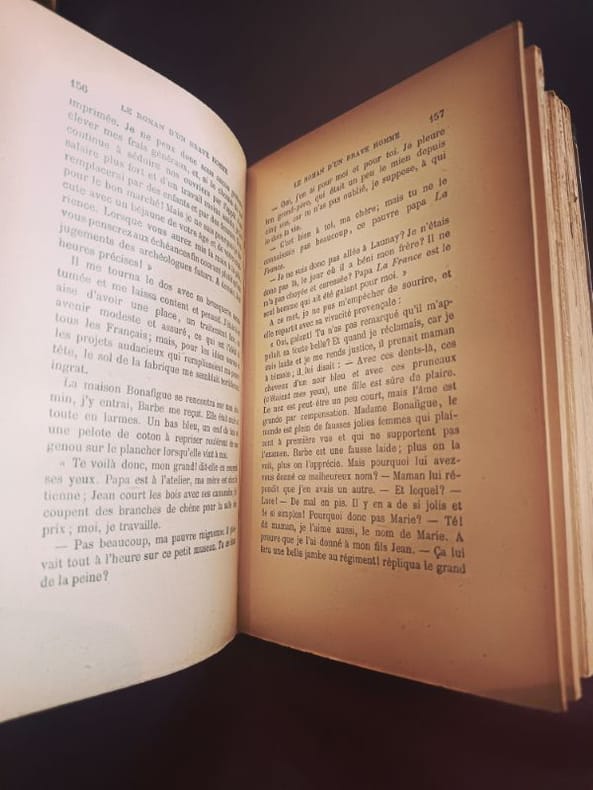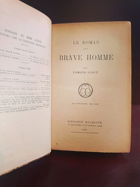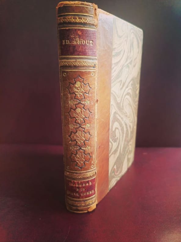 Paris, Librairie Hachette 1923 1 in -8 demi chagrin dos à caisson ornés, piece de titre et d'auteur 456 [p.p] Une œuvre emblématique de la littérature de « bon sens » français. Edmond About y retrace le destin exemplaire d'un homme de cœur, dans une langue d'une clarté parfaite. Cet exemplaire se distingue par l'élégance de son dos : le travail des dorures en caissons, allié au prestige des pièces de titre rapportées, en fait un volume décoratif de premier plan pour une bibliothèque de classiques.Reliure : Présente des traces d'usure sur les coiffes ou les mors, mais conserve toute sa superbe visuelle grâce aux dorures.Intérieur : Exceptionnelle fraîcheur du papier, exemplaire très sain. notes éparses au crayon d'un.e ancien.ne propriétaire