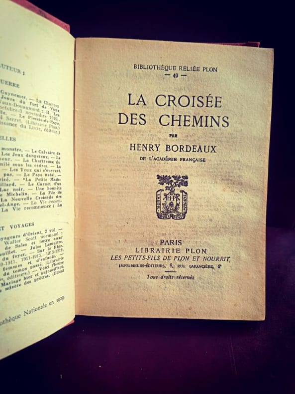 Paris, Plon 1929 1 in -8 Cartonnage Cartonnage Editeur; Couverture toile rouge 254 [p.p] L'un des romans les plus célèbres d'Henry Bordeaux, explorant les thèmes du devoir, de la fidélité aux racines et du choix de vie. Cet exemplaire de 1929, bien que marqué par le temps, offre une structure robuste, idéale pour une immersion dans l'ambiance littéraire de l'entre-deux-guerres.