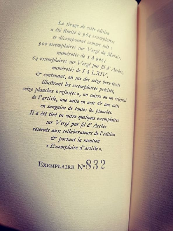 Edition tirée à 964 exemplaires numérotés seulement, celui-ci un des 900 sur vergé du Marais (n°579).15 gravures sur cuivre de Raoul Serres (au lieu des 16 annoncées)."Thémidore" de Godard d'Aucour est suivi de "Le Sultan Misapouf et la Princesse Grisemine ou les Métamorphoses" par l'Abbé de Voisenon. ...................... Photos sur demande ..........................