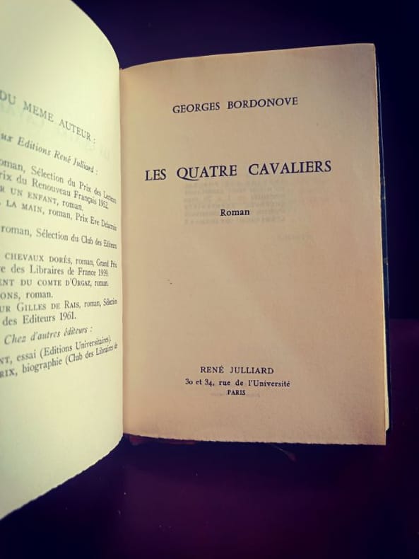 Paris, Julliard 1962 1 in -8 demi chagrin , dos à nerfs 296 [p.p] Dans cette épopée médiévale, Bordonove déploie son talent de conteur pour faire revivre l'esprit de chevalerie. Entre honneur, trahison et quête d'absolu, ce roman est une immersion totale dans les codes du Moyen Âge, servis par une langue riche et précise.Bien que le titre évoque une fraternité masculine classique, la lecture de Bordonove gagne à être passée au crible d'une réflexion sur le genre. Les figures féminines, souvent en arrière-plan dans le roman de chevalerie traditionnel, agissent ici comme les véritables pivots moraux de l'intrigue.D'un point de vue de développement cognitif, le récit explore la psychologie de l'engagement total — une forme d'hyper-focalisation éthique que l'on pourrait qualifier de "neuro-atypique" par son refus des compromis sociaux ordinaires. L'esthétique de la reliure, avec ses nerfs saillants et sa structure rigoureuse, reflète cette droiture et ce besoin d'ordre propre aux personnages de Bordonove.