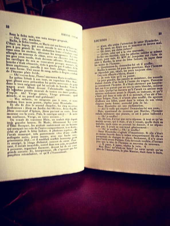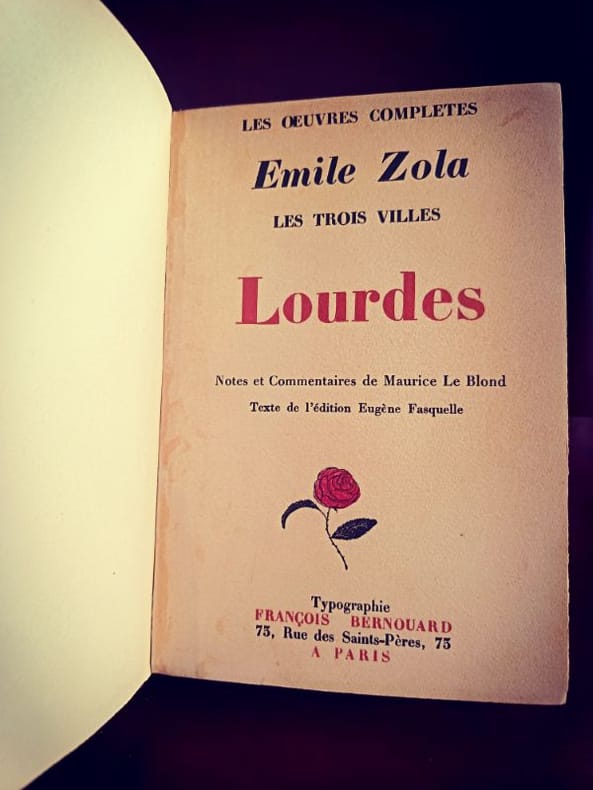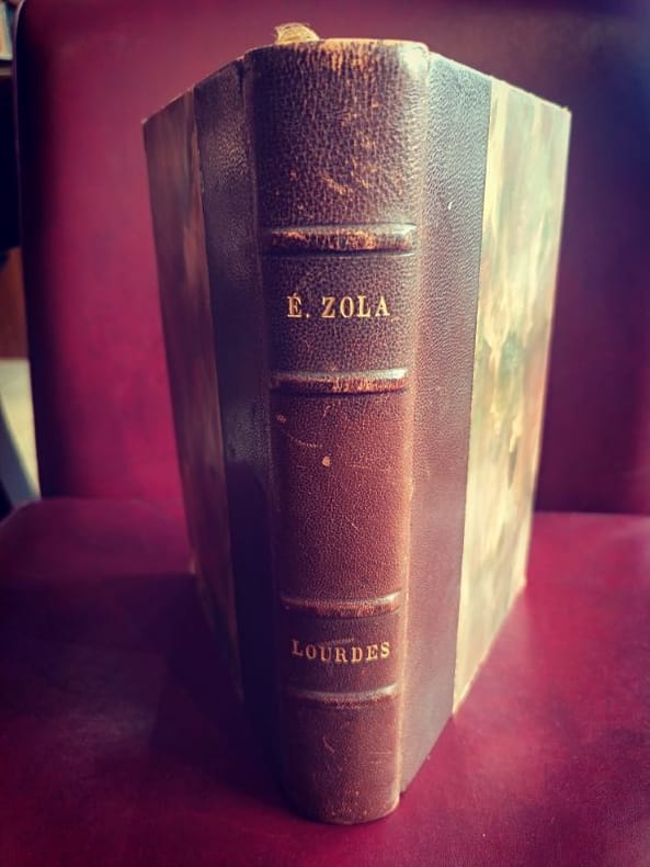 Paris Bibliothèque-Charpentier, Eugène Fasquelle / François Bernouard 1928 1 in -8 Reliure de l'époque en demi-chagrin, dos à nerfs ornés de caissons dorés, titres et tomaisons dorés L'abbé Pierre Froment accompagne un train de pèlerins vers la cité mariale. Zola y mène une enquête quasi journalistique sur le "mécanisme du miracle". Entre la ferveur mystique des foules et l'organisation commerciale du sanctuaire, l'auteur interroge la persistance du besoin de merveilleux dans un siècle dominé par le positivisme. C'est une œuvre de transition majeure où le naturalisme se confronte directement à la question spirituelle.Zola déploie une hyper-focalisation descriptive sur la souffrance et la ferveur. Pour un esprit neuro-atypique, la lecture de Lourdes offre une structure de "système clos" : le train, la grotte, les piscines. Chaque étape du pèlerinage est décortiquée comme un rouage d'une immense machine à produire de l'espoir. Cette mise en ordre méthodique d'un phénomène irrationnel permet de stabiliser le chaos des émotions humaines par une analyse rigoureuse des faits.L'œuvre met en lumière la condition des femmes oubliées, dont la dévotion est souvent l'unique espace d'expression. D'un point de vue féministe, Marie de Guersaint incarne la lutte entre la pathologie et la volonté de vivre. Réhabiliter ce texte aujourd'hui permet d'analyser comment l'institution religieuse a pu encadrer le corps féminin souffrant. C'est un plaidoyer pour le développement de la lucidité face aux exploitations de la détresse, prônant une autonomie de la pensée libérée des illusions consolatrices.