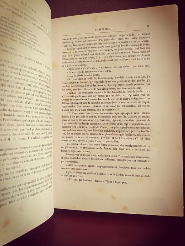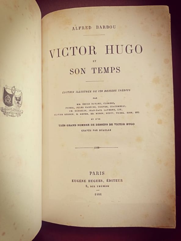 D'un point de vue historique, cet ouvrage marque le développement du culte de l'écrivain citoyen. En 1881, Hugo est une institution nationale, une figure de souveraineté morale pour la République. Posséder ce livre, c'est archiver le processus de sacralisation d'un auteur par l'image et la reliure d'apparat, transformant la biographie en un objet de dévotion laïque. Très bien conservé Disponibilité sous réserve de vente en boutique, prix valable frais de port inclus pour commande > 90 € et poids < 1 Kg