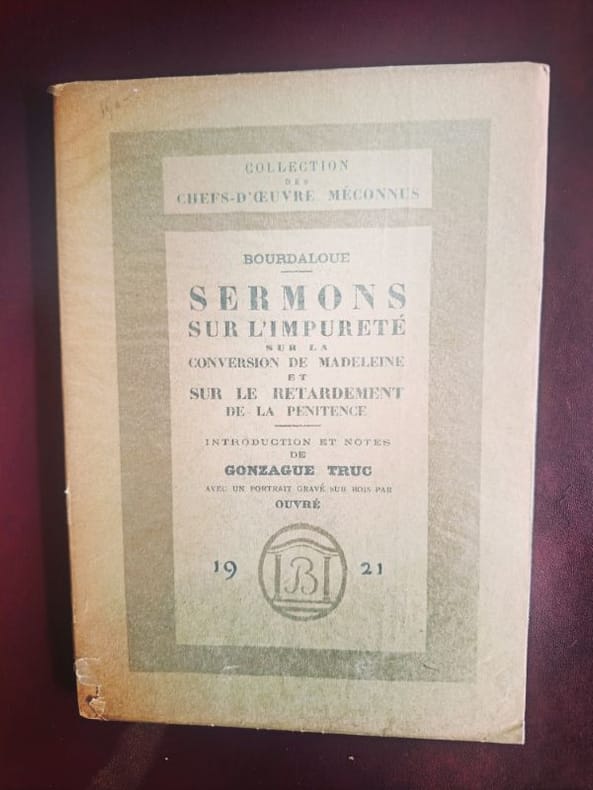 D'un point de vue historique, cet ouvrage marque le développement de la souveraineté de la conscience. Bourdaloue, par sa parole, osait confronter la cour de Versailles à ses propres failles. Posséder cette édition de 1921, c'est archiver la pérennité d'une pensée qui refuse le retardement de l'action juste, offrant une vision de la littérature comme un outil de transformation sociale et personnelle. Très bon état Disponibilité sous réserve de vente en boutique, prix valable frais de port inclus pour commande > 90 € et poids < 1 Kg