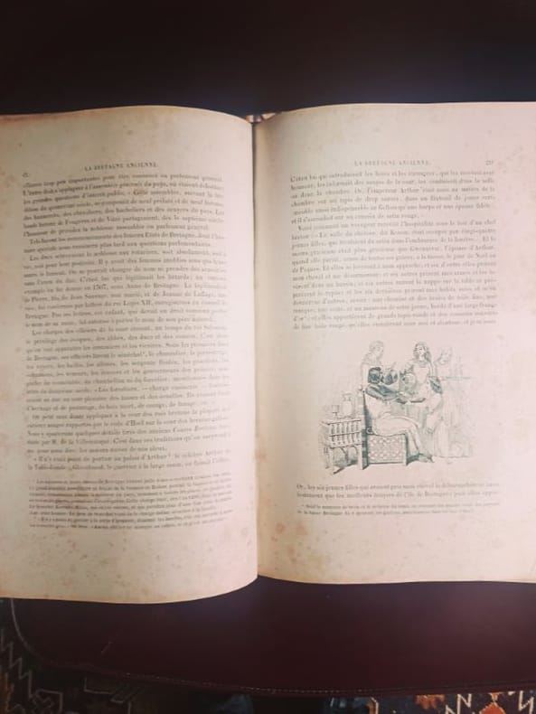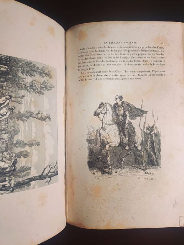 Paris, W. Coquebert ca 1844 1 in -4 demi chagrin dos à caisson 652 [p.p] L'ÂME DE L'ARMORIQUE : Le chef-d'œuvre de Pitre-Chevalier sur la Bretagne ancienne et moderne. Illustré par les plus grands maîtres du romantisme (Johannot, Leleux), ce volume chez Coquebert est la pierre angulaire de toute bibliothèque bretonne. Un exemplaire qui porte la patine du temps, témoignant de sa place de choix dans les bibliothèques de cœur.