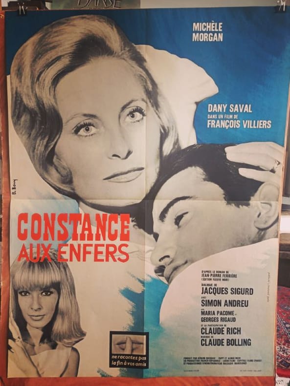 1963 60x80 LE PIÈGE DE L'OMBRE : Affiche originale (1963) du film Constance aux Enfers. Michèle Morgan livre une performance bouleversante dans ce thriller psychologique signé François Villiers. Une composition tout en tension et en mystère, emblématique du suspense à la française. Présentée dans un état exceptionnel, cette affiche capture l'élégance tragique d'une icône du cinéma mondial.