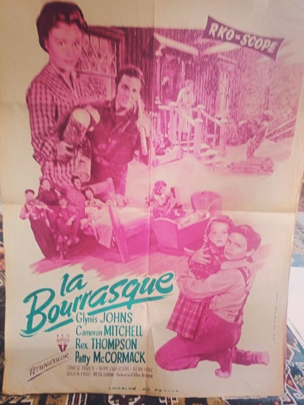 1957 60 x 80 LE COURAGE DES HUMBLES : Affiche originale (1957) du film La Bourrasque. Allen Reisner signe une fresque humaine d'une force inoubliable sur le destin d'une famille de pionniers. Une composition visuelle qui exalte la solidarité et la force d'âme face aux tempêtes du destin. Présentée dans un état exceptionnel, cette affiche est un hommage vibrant aux racines de l'Amérique et à la noblesse des sentiments souverains.
