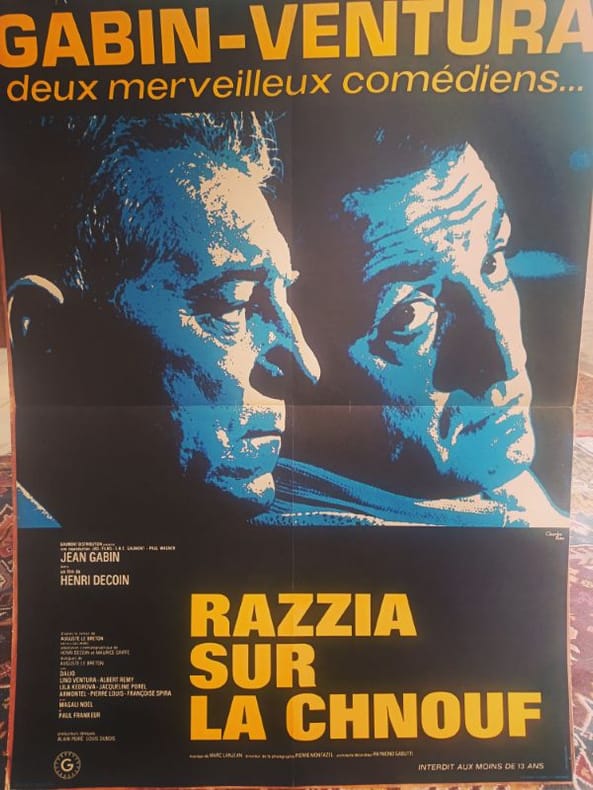 1955 60 x 80 LA LOI DU MILIEU : Affiche originale (1955) du chef-d'œuvre de Henri Decoin, Razzia sur la chnouf. Jean Gabin impose sa stature légendaire dans cette plongée brutale au cœur des trafics parisiens. Une composition visuelle percutante, capturant toute la tension et le réalisme noir d'un classique indémodable. Présentée dans un état de conservation exceptionnel, cette affiche est une pièce maîtresse pour tout collectionneur du grand cinéma policier français.