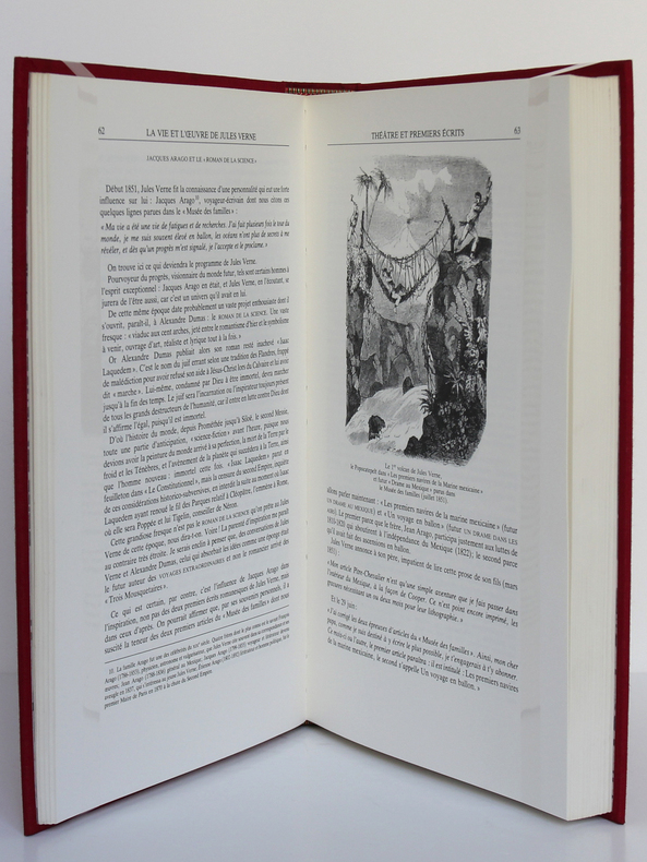 Paris, Chez Michel de l’Ormeraie, 1978. In-4 (18 x 27 x 3 cm), relié, reliure éditeur pleine toile rouge, cadres dorés et pièce de titre dorée sur fond bleu au dos, gardes illustrées, jaquette illustrée. Portrait de Jules Verne en frontispice, 292 pages, nombreuses illustrations (documents, photographies, reproductions de gravures). Généalogie. Classification de l’œuvre intégrale et données numériques. Complet de la reproduction de l’affiche publicitaire du 1er janvier 1900 de la Maison Hetzel sur feuille volante. Avec une dédicace manuscrite originale de l’éditeur datée de janvier 1979 sur la première page blanche. // Très bon état.