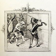 Charmante illustration comprenant dix compositions dessinées et gravées à l'eau-forte par Adolphe Lalauze. Les illustrations à pleine page portent un bel encadrementornemental.Tirage à 350 exemplaires, celui-ci est un des 200 sur papier vélin d’Arches.Avec les feuillets de souscription illustrés reliés in-fine.