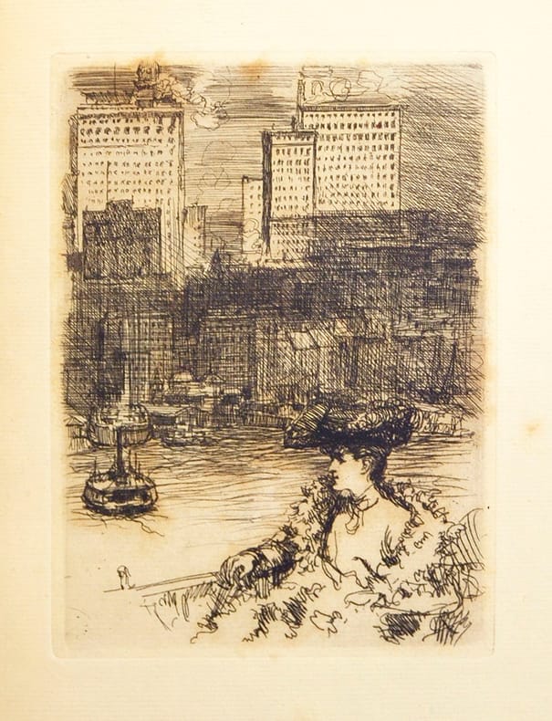 Paris, A.- F. Ferroud, 1924. 1 vol in-8. Plein maroquin brun, dos à nerfs, titre, auteur et date dorés, contreplats ornés d'aquarelles originales, tranches dorées, couvertures et dos conservés, sous étui bordé. [P. AFFOLTER].