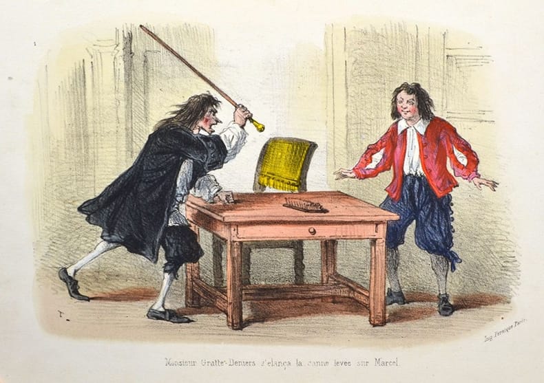 16 planches lithographiées par Charles Fernique d'après Telory.Imprimerie de Beau J., à Versailles.Armand-Louis-Henri Telory (né à Strasbourg en 1820 et mort en 1874) est un lithographe et dessinateur français. Il a illustré de nombreux ouvrages pour enfants tout au long de sa carrière. Dans les années 1860, Télory signe une fidèle collaboration avec la maison Martinet. Cette publication semble rare car Embs et Mellot, dans leur ouvrage sur le siècle d'or du Livre pour enfants, consacrent à l'artiste une longue notice bibliographique sans nommer ce titre.Pages 23 à 27 inversées : 27, 24, 25, 26, et 23, reliées entre les pages 22 et 28.Salissures et mouillures dans les angles de la reliure. Dernier feuillet fortement roussi et présentant de petits manques en marges.