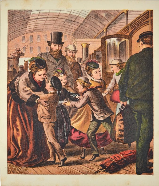 Paris, Librairie Hachette & Cie, 1872. 1 vol. in-4 carré. 26,5 x 23,3 cm. [6]ff, 6 chromo. Broché, couvertures lithographiée en couleurs sur papier rose.