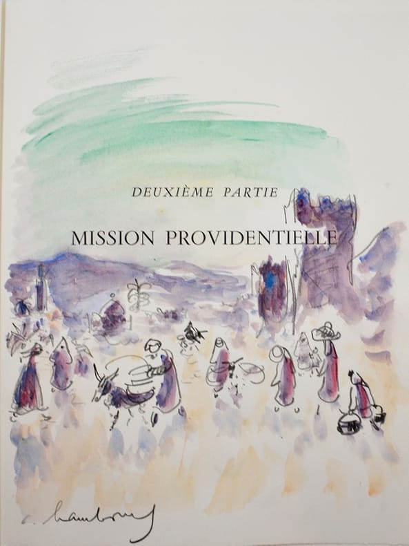 Ouvrage orné de 30 illustrations originales en couleurs de André Hambourg gravées sur bois par Pierre Bouchet, Jacques Hérouard et Guy Descouens dont dix doubles, ainsi que 25 culs-de-lampe, 29 lettrines, faux-titre et titre gravés par Henri Renaud. Édition originale de ce roman écrit entre 1930 et 1932 à Alger incarnant la lutte entre le colonialisme le plus traditionnel et l'anti-colonialisme et portant un jugement sévère sur l'occupation française en Afrique du Nord. Il ne fut publié qu'en 1967 alors qu'il n'est plus qu'un document historique, ayant perdu son caractère brûlant de l'époque. Exemplaire enrichi de deux grandes aquarelles en couleurs à pleine page dont la première avec un envoi à Fréderic Mégrét, "avec toute ma vieille amitié... et nos souvenirs d'Afrique du Nord!" Jeune surréaliste en 1929 rapidement évincé par Breton, il se lance dans le journalisme qu’il exercera principalement en Océanie et en Egypte. Il deviendra plus tard critique d'art au Figaro littéraire. Tirage à 224 exemplaires, celui-ci un des 24 exemplaires hors-commerce numérotés réservés à l'Auteur, l'Illustrateur... Il est imprimé sur vélin B.F.K. de Rives.
