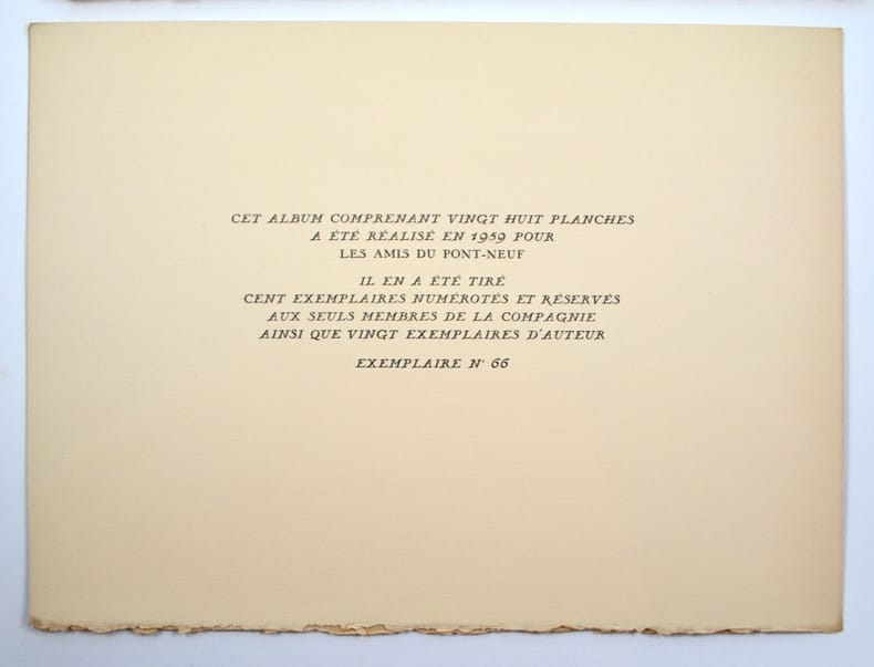 Paris, Les Amis du Pont-Neuf, 1959. 1 vol. in-4 oblong. En feuilles, sous chemise en daim éditeur ornée d'une illustration, rabats, sous étui.