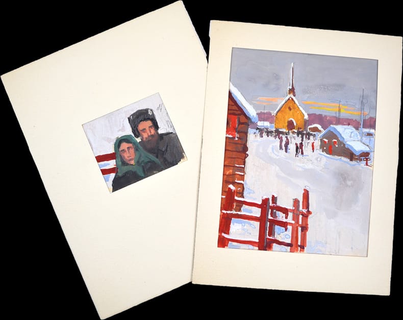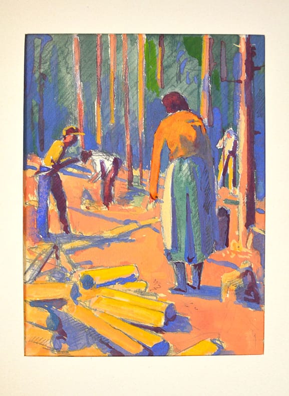 Ouvrage illustré de cinq illustrations en couleurs hors-texte.Exemplaire n°XXIV, imprimé pour Mr Corneau. L'éditeur a ajouté à son exemplaire un ensemble des quatorze dessins originaux à la mine de plomb, gouache et aquarelle. Ils mesurent entre 5,8 x 8 cm et 17,5 x 13,5 cm (pour six d'entre eux). Huit sont inédits, deux dessins concernent le frontispice. Chaque dessin est présenté sous marie-louise.Bel ensemble de gouaches originales pour ce grand récit canadien. Petits frottements aux mors des chemises et aux bords de l'étui.