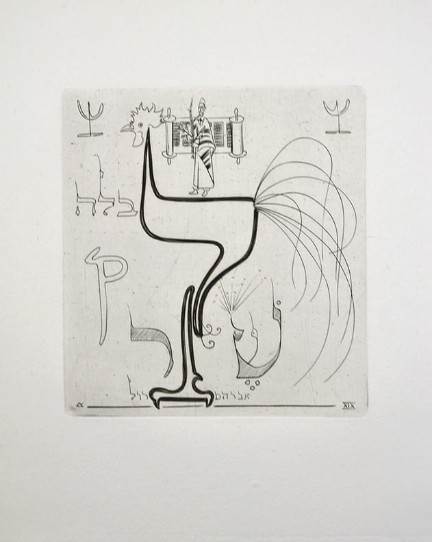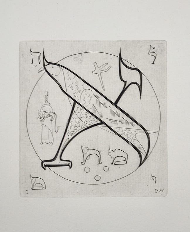 Ouvrage composé de 22 lettres hébraïques gravées au burin d'Abram Krol.Album tiré sur papier d'Auvergne à la main du moulin Richard de Bas.Tirage limité à 121 exemplaires, l'un des 99 en tirage ordinaire.Abram KROL (1919 - 2001) peintre et graveur, est né en 1919 à Pabjanice en Pologne dans une famille juive. À 19 ans, il part pour la France. Après deux ans d’études à l’Institut technique du Génie civil de Caen, il choisit l’École des Beaux-Arts d’Avignon. En 1944, il s’installe à Paris. Pendant quelques temps, il est ouvrier tourneur le jour, artiste peintre le soir. De cette activité naît une première exposition en 1946 à la galerie Katia Granoff. Quelques mois plus tard, Abram Krol rencontre le graveur Joseph Hecht qui l’initie à l’art du burin. Puis il découvre de nouvelles techniques, l’art des médailles à l’invitation de la Monnaie de Paris et l’art de l’émail. Il a illustré de nombreux textes prestigieux. Parmi ses sources d’inspiration, on peut noter d’une part la bible et de l’autre le règne animal.