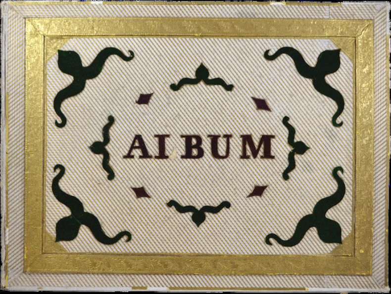 [XIXe] Environ 37 x 51,5 cm. Présentés dans une boite cartonnée de style romantique recouverte d'un papier ornée de diagonales blanches et or, encadrement en relief recouvert d'un papier gaufré à l'or, titre et ornements ajoutés en feutrine verte et bordeaux, les côtés de la boite sont recouverts du même papier gaufré. 42 x 57,5 cm.