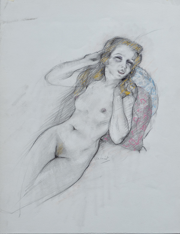 41 x 32 cm. Fusain et rehaut de pastels.