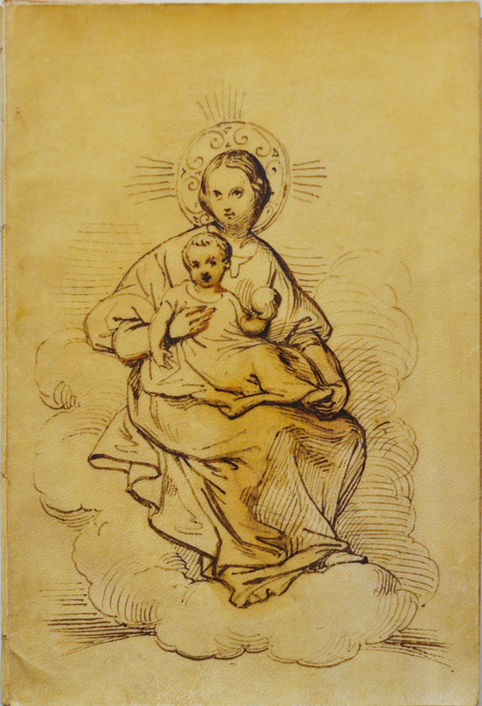 Edition originale ornée de nombreux culs-de-lampe et têtes de chapitre.Une note ancienne au crayon bleu indique qu’il s’agit de l’exemplaire de Devéria. Les deux dessins qui ornent les plats sont de sa main. Il est noté qu’il provient de la vente Devéria. Sur le premier plat, est représentée une vierge à l’enfant, sur le second, le génie de la poésie. Il doit s’agir d’Achille Devéria. “Nous devons signaler un caprice plein de goût d’Achille Devéria : sur les couvertures en parchemin blanc de petits volumes et plaquettes, il s’est plu à dessiner à la plume, soit le portrait de l’auteur et une allégorie, soit des sujets tirés de l’ouvrage”. Introduction de Catalogue des tableaux et dessins de feu M. Achille Devéria. Paris, Maulde et Renou, 1858 par Me Delbergue-Cormont. La vente de livres et autographes eut lieu le mercredi 7 avril 1858.Ex-libris gravé collé sur le contre-plat : Ex museo van der Helle. La bibliothèque de ce collectionneur lillois, fut vendue aux enchères en 1868, par maître Delbergue-Cormont, même maison de vente que pour la vente Devéria.Barbier, IV, 562.