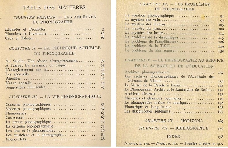 Les précurseurs littéraires et scientifiques, Charles Cros, Thomas Edison, l’essor de l’industrie phonographique aux états-Unis, le phonographe en Europe, le phonographe et ses applications etc. L’histoire du phonographe sera brève, approximativement celle d’un homme, et finira avant la Deuxième Guerre mondiale. Néanmoins, l’instrument aida à répandre les chansons, les voix célèbres, les opéras, le ragtime, le jazz... dans le monde entier. L’auteur a traité son sujet en amateur avisé et en collectionneur passionné faisant de cet ouvrage un document incontournable sur ce sujet. Bon état d’occasion