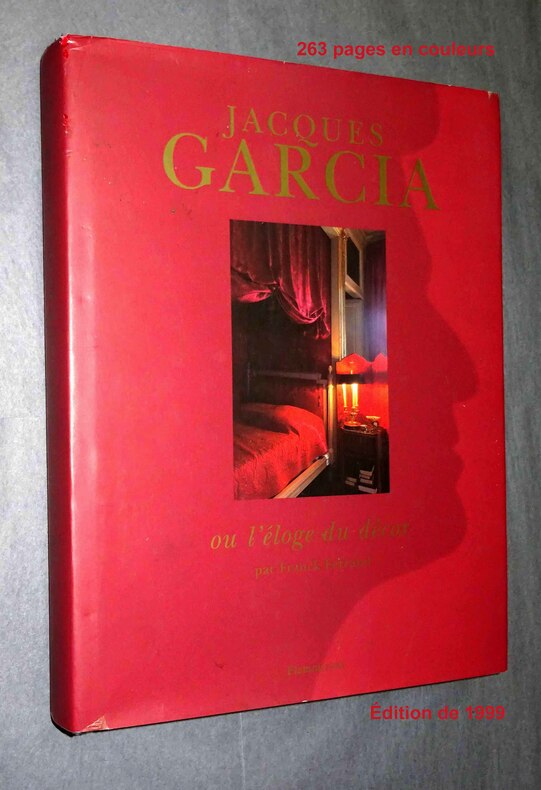 Éditions Flammarion, Paris, 1999. Relié pleine percaline sous jaquette illustrée. 31,5 x 25 x 3 cm. 263 pages. Magnifique iconographie en couleurs. Poids 2,1 kg. Complet ( vérifié page à page ) en bon état d'occasion. Seule la jaquette présente de bien minimes défauts marginaux. Présentation par Le Journal des Arts du 21 janvier 2000 : Après avoir décoré les demeures des riches de ce monde, Jacques Garcia vient de signer une série de lieux parisiens, comme l’hôtel Coste, La Grande Armée, Ladurée, le nouveau Fouquet’s, aux antipodes du minimalisme et du « zen » à la mode, avec leurs couleurs chatoyantes et leurs intérieurs foisonnants. Les photographies de Marc Walter et le texte de Franck Ferrand rendent bien compte du style Garcia. Leur ouvrage rappelle aussi comment ce petit-fils de boulanger s’est forgé un œil exceptionnel en fréquentant les Puces, Drouot, et assidûment musées, bibliothèques et archives, pour restituer leur histoire à des objets abandonnés. Toutes ces qualités, Jacques Garcia les met au service du château normand du Champ de Bataille, qu’il avait découvert à l’âge de 10 ans et qu’il restaure patiemment aujourd’hui.