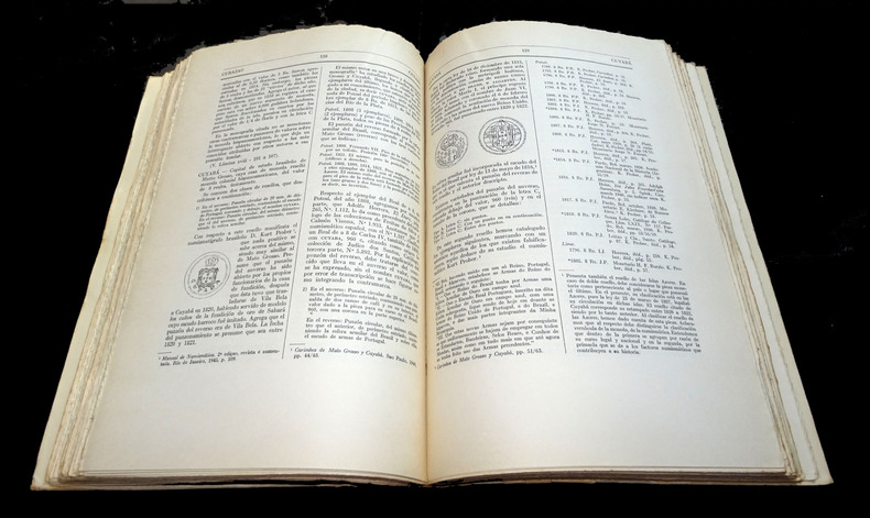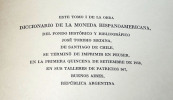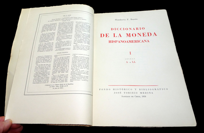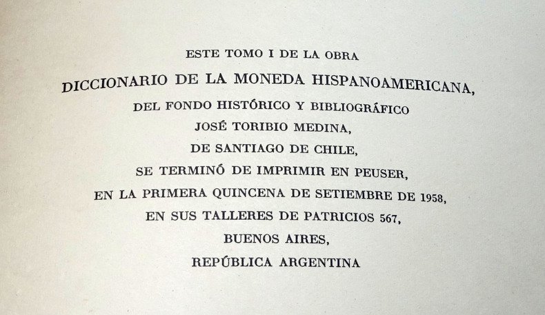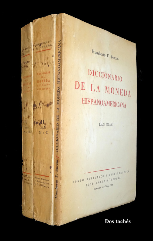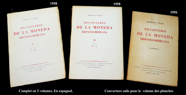 Fondo Histórico y bibliográfico José Toribio Medina, Santiago de Chile. Libraire-Éditeur Peuser, Buenos Aires, Argentine, 1958 et, pour le volume de planches, 1956. Couvertures souples Tome 1 : 30 x 21 x 3cm. XIX + 327 pages. Quelques gravures en noir. Poids : 1050 g. Tome 2 : 30 x 21 x 4 cm. 453 pages. Quelques rares gravures en noir. Poids : 1340 g. Tome 3 : 29 x 20 x 1 cm. 116 planches rectos présentant 908 pièces. Poids : 540 g. Complet (vérifié soigneusement page à page). Bon état général. Couverture salie pour le volume de planches. Dos tachés (voir photos).