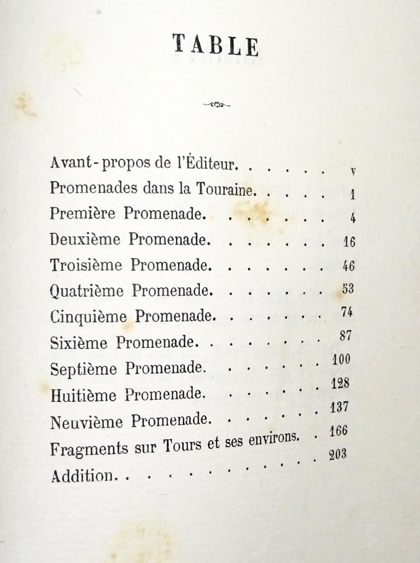 Publication de la Société des bibliophiles de Touraine Alfred Mame & Cie Éditeurs, 1861. Édition originale imprimée à seulement 180 exemplaires. 60 sur papier chamois et 120 sur papier vergé. Cet exemplaire sur papier vergé à grandes marges. Reliure demi-chagrin à coins 5 nerfs, tranche supérieure dorée signée de CUZIN. 22 x 14 x 2 cm. XVI + 205 pages paginées. Couverture non conservée. Signet marque-page en ruban tissu. Poids 555 g. Ex-libris de HENRI TARDIVI, Pharmacien bibliophile de Saint-Étienne (1854-1915).