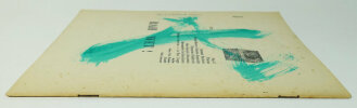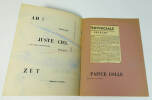 La Louvière, Editions de Montbliart, septembre 1958. Comité de rédaction : André Balthazar et Pol Bury. Plaquette agrafée, 21,3 x 17,6 cm, 16 p. Edition originale. Numéro réhaussé d'interventions à la gouache et au pastel, de deux coupures de presse contrecollées. Citations de Sacher-Masoch, André Breton, Jean-Paul Sartre, Arthur Rimbaud, Goethe, Isidore Ducasse, Georges Bernanos, Lamartine. Quelques rousseurs sur la couverture, manque au coin du catalogue.