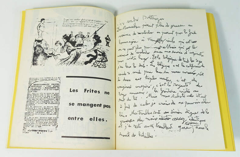 La Louvière, Daily-Bul Editions, 1964. 17 x 22 cm, br., n.p. [60 p.], E.O. Très bel état général. Un des 35 exemplaires de luxe numérotés, imprimé sur « papier du pays », le nôtre portant le numéro 31. Les exemplaires de luxe comportent un «évaluateur de distance à vol d'oiseau » enrichi d'une œuvre d'André Balthazar numérotée et justifiée au crayon par l'artiste. Bien complet de son feuillet « Erratum belgicanum herculanum ».