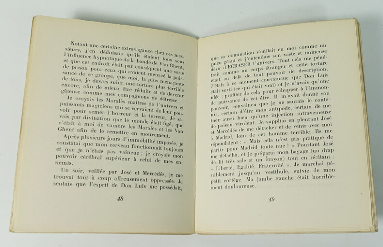 Editions Fontaine, collection "L'Âge d'or" dirigée par Henri Parisot, 1945. In-16 broché, couverture rempliée illustrée d'après une composition de Mario Prassinos, 91 p. Edition originale de ce livre important dans lequel Leonora Carrington témoigne de son internement psychiatrique en Espagne. Exemplaire numéroté sur vélin blanc. Carte légendée in fine. Dos légèrement frotté, sinon agréable exemplaire.